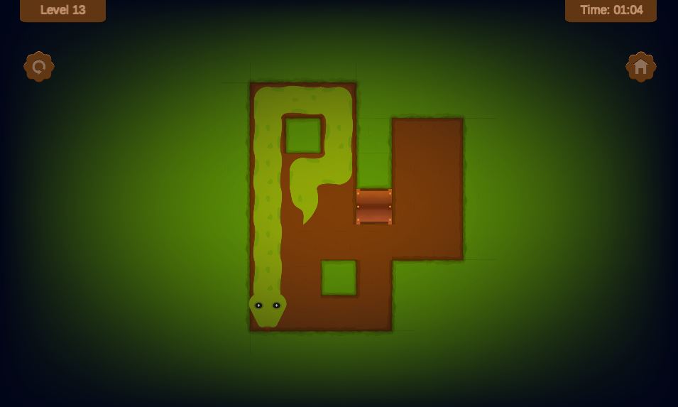 As the snake moves, it grows permanently, turning the entire level into a planning challenge where every move shapes the future.